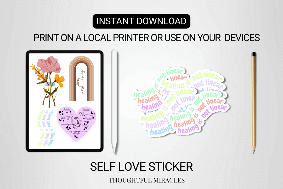 KEYWORDS: Free inspirational stickers, free printable stickers, healing is not linear sticker, free mental health stickers download, positive quote stickers free, uplifting stickers free download, free motivational stickers, free digital stickers, printable mental health affirmation stickers, free colorful sticker designs, free stickers for planners, free self-love stickers, free mental health awareness stickers, free downloadable stickers for journaling, free stickers for self-care.